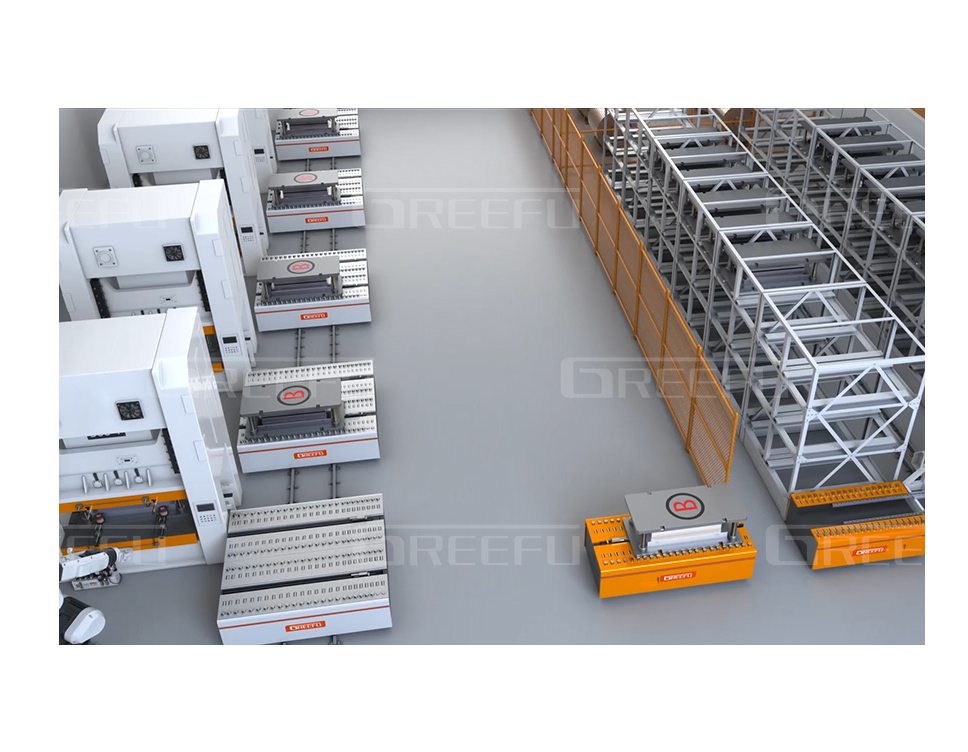 換模臺車系統 單臺或多臺注塑機共用一套格萊富自動換模臺車系統,能有效解決大型模具的換模作業,如 汽車鈑金、家電電梯等行業沖壓零件;且格萊富研發各種搬運臺車,并設計單鍵全自動或半自動操作用于 模具的搬入搬出,該模具輸送系統已被業內接受與采用,尤其適用于汽機車零部件等需大型模具的制造業